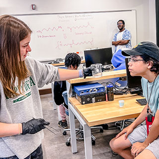 Take your passion for building and problem-solving to the next level with a program designed to make engineering come alive. Work alongside peers to tackle real-world projects that challenge your creativity and technical skills. From hands-on labs and industry tours to networking with faculty and professionals, this experience blends learning, collaboration, and fun—all while giving you a glimpse into what it means to be an engineer.